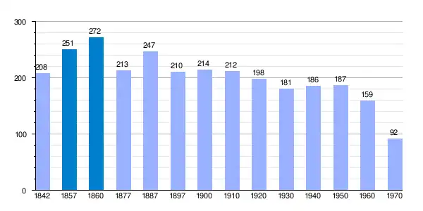 | Año[16] | 1842[17] | 1857 | 1860 | 1877 | 1887 | 1897 | 1900 | 1910 | 1920 | 1930 | 1940 | 1950 | 1960 | 1970 | 1980[18] |
