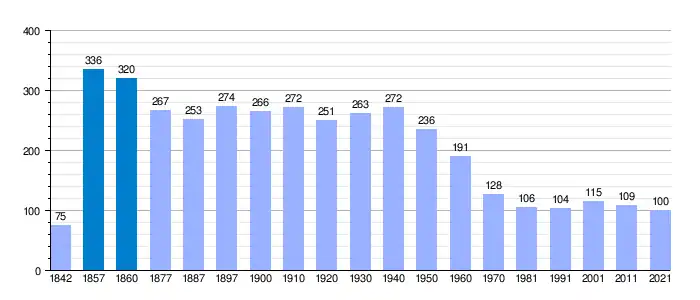 | Gráfica de evolución demográfica de Villalba de Perejil[5] entre 1842 y 2021 |