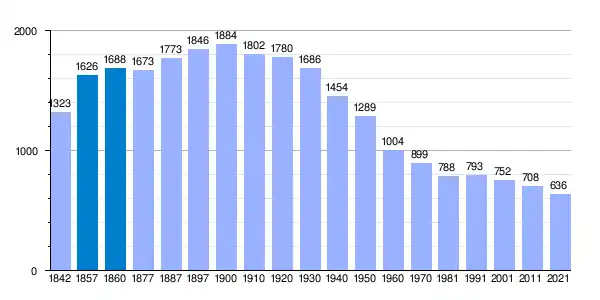 | Gráfica de evolución demográfica de Villalba de los Arcos[8] entre 1842 y 2021 |