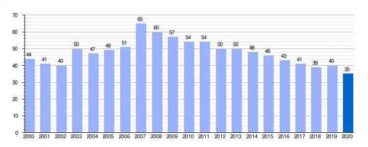 | Gráfica de evolución demográfica de Villaldavín entre 2000 y 2020 |