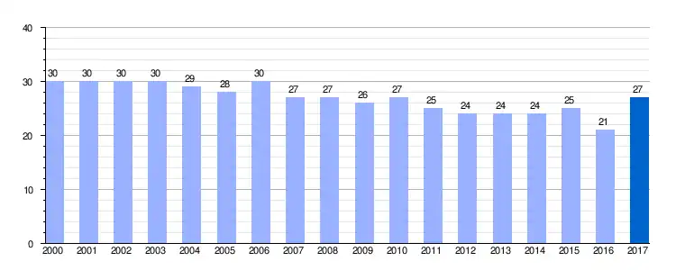 | Gráfica de evolución demográfica de Villalebrín entre 2000 y 2017 |