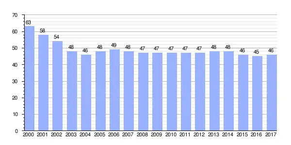 | Gráfica de evolución demográfica de Villalibre de Somoza[2] entre 2000 y 2017 |
