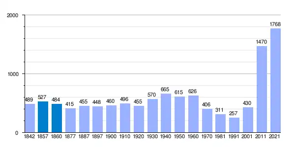 | Gráfica de evolución demográfica de Villalobón[1] entre 1842 y 2021 |