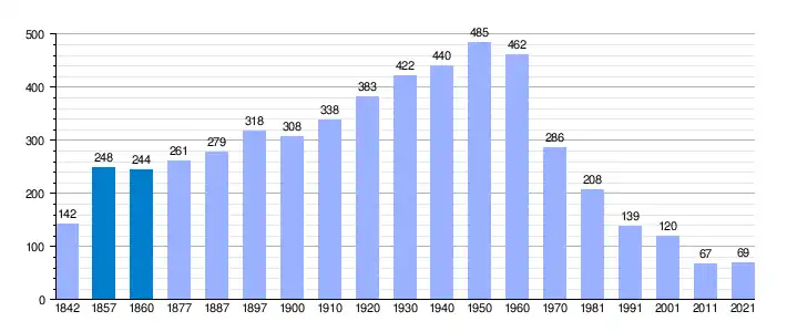 | Gráfica de evolución demográfica de Villalobar de Rioja[4] entre 1842 y 2021 |