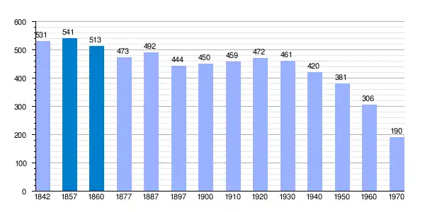 | Gráfica de evolución demográfica de Villalumbroso[1] entre 1842 y 1970 |
