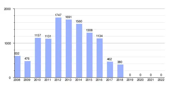 | Gráfica de evolución demográfica de Villamanrique de la Condesa[6] entre 1842 y 2021 |