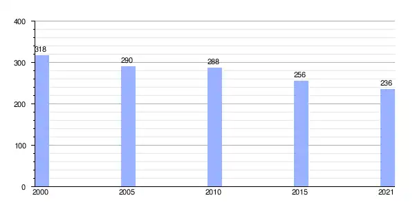 | Gráfica de evolución demográfica de Villamayor de la Boullosa (parroquia) entre 2000 y 2021 |