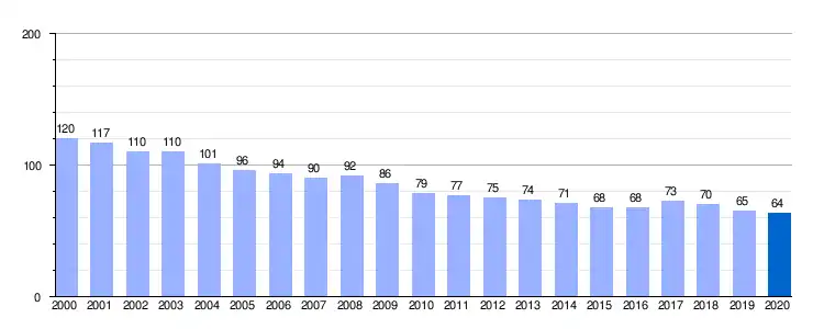 | Gráfica de evolución demográfica de Villambroz entre 2000 y 2020 |