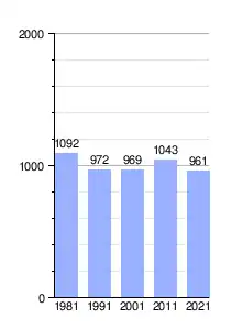 | Gráfica de evolución demográfica de Villamena[1] entre 1981 y 2021 |