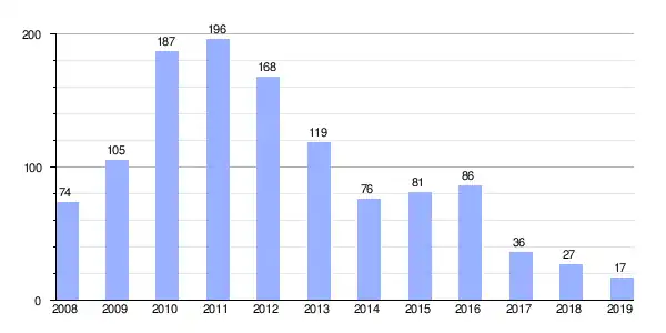 | Gráfica de evolución de Deuda viva del Ayuntamiento de Villamena entre 2008 y 2019 |