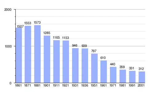 | Gráfica de evolución demográfica de Villamiroglio entre 1861 y 2001 |