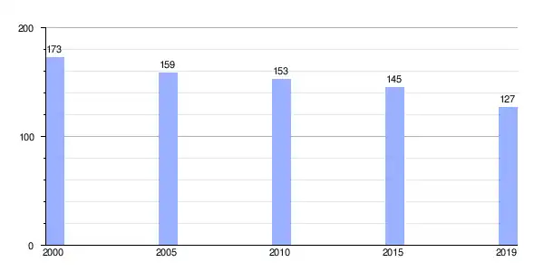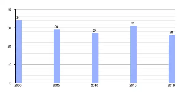 | Gráfica de evolución demográfica de Villamor (parroquia) entre 2000 y 2019 |