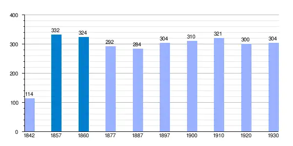 | Gráfica de evolución demográfica de Villamorco[5] entre 1842 y 1930 |