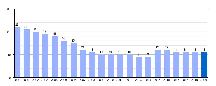 | Gráfica de evolución demográfica de Villamorco entre 2000 y 2020 |