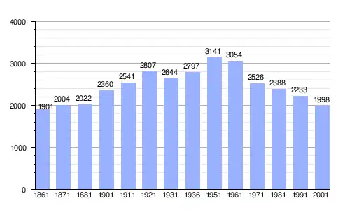 | Gráfica de evolución demográfica de Villanova del Battista entre 1861 y 2001 |