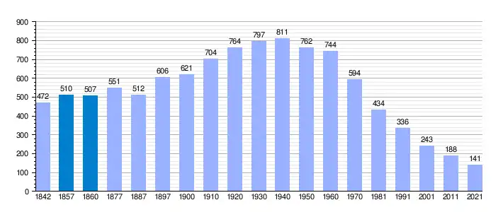 Gráfica de evolución demográfica de Villanueva de Alcorón[7]​ entre 1842 y 2021