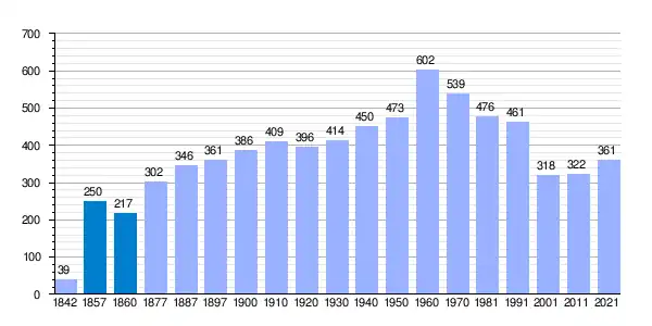 Población de derecho según los censos de población del INE Población de hecho según los censos de población del INEEntre el censo de 1857 y el anterior, crece el término del municipio porque incorpora a 495034 (Castropepe)[9] |