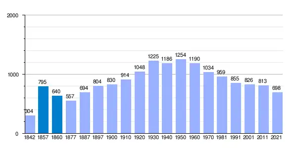 | Gráfica de evolución demográfica de Villanueva de Bogas[1] entre 1842 y 2021 |
