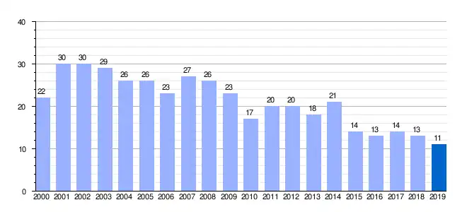 | Gráfica de evolución demográfica de Villanueva de Cañedo[4] entre 2000 y 2019 |