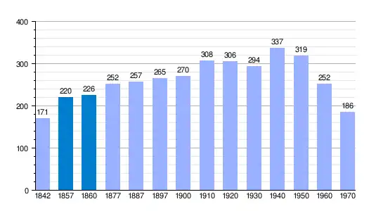 | Gráfica de evolución demográfica de Villanueva de Rio Ubierna[2] entre 1842 y 1970 |