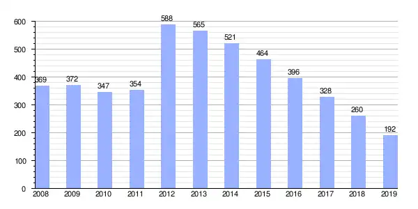 Deuda viva del Ayuntamiento de Villanueva de Tapia en miles de Euros según datos del Ministerio de Hacienda y Ad. Públicas.[5]