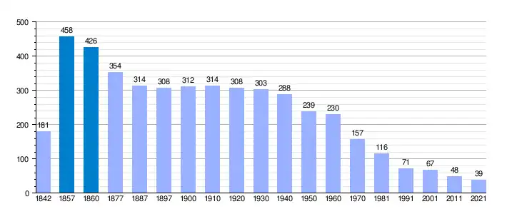 | Gráfica de evolución demográfica de Villanueva de Teba[3] entre 1842 y 2021 |