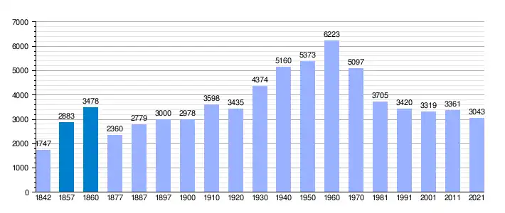 | Gráfica de evolución demográfica de Villanueva de la Reina[5] entre 1842 y 2021 |
