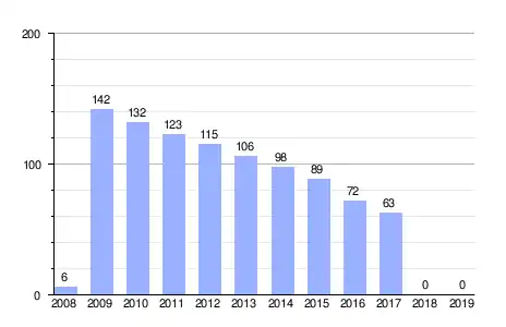 | Gráfica de evolución de la deuda viva del Ayuntamiento de Villanueva de las Torres entre 2008 y 2019 |