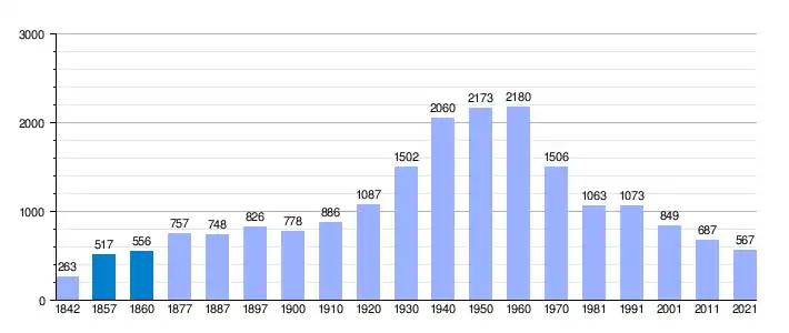 | Gráfica de evolución demográfica de Villanueva de las Torres[9] entre 1842 y 2021 |