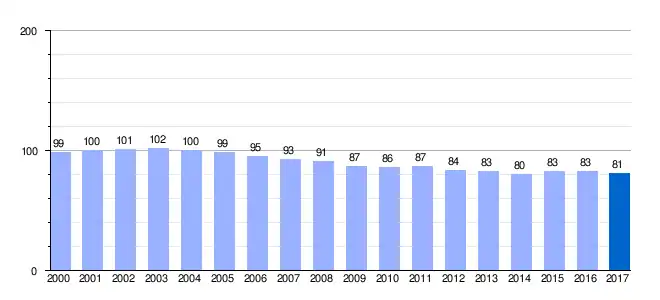 | Gráfica de evolución demográfica de Villanueva de los Pavones[3] entre 2000 y 2017 |