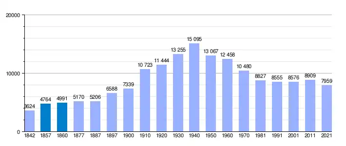 | Gráfica de evolución demográfica de Villanueva del Arzobispo[1] entre 1842 y 2021 |