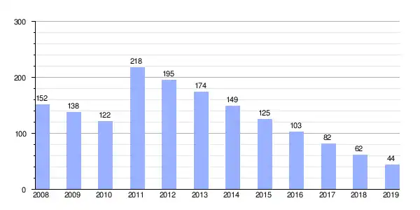 Deuda viva del Ayuntamiento de Villanueva del Duque en miles de Euros según datos del Ministerio de Hacienda y Ad. Públicas.[2]