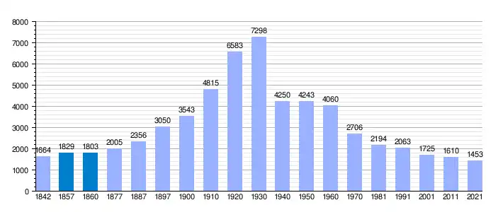 Gráfica de evolución demográfica de Villanueva del Duque[1]​ entre 1842 y 2021
