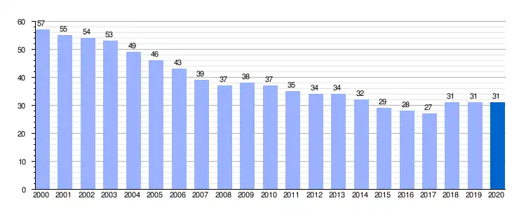 | Gráfica de evolución demográfica de Villanueva del Río entre 2000 y 2020 |