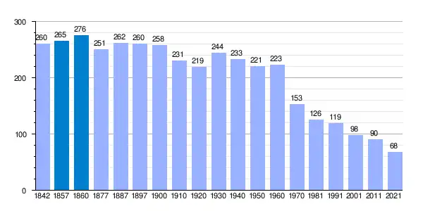 | Gráfica de evolución demográfica de Villanueva del Rebollar[2] entre 1842 y 2021 |