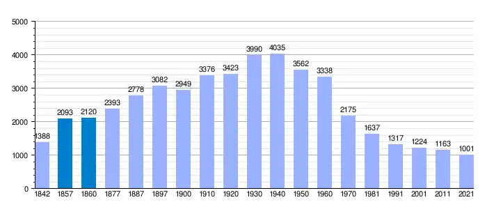| Gráfica de evolución demográfica de Villanueva del Rey[2] entre 1842 y 2021 |