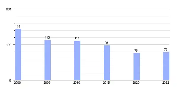 | Gráfica de evolución demográfica de Villaodrid (parroquia) entre 2000 y 2022 |