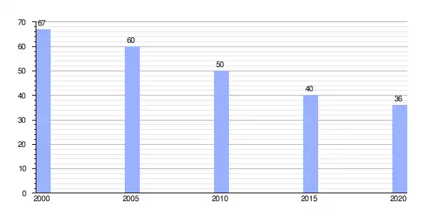 | Gráfica de evolución demográfica de Villaouruz entre 2000 y 2020 |