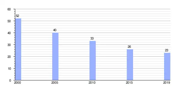 | Gráfica de evolución demográfica de Villaquinte (parroquia) entre 2000 y 2019 |