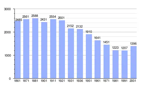 | Gráfica de evolución demográfica de Villar San Costanzo entre 1861 y 2001 |