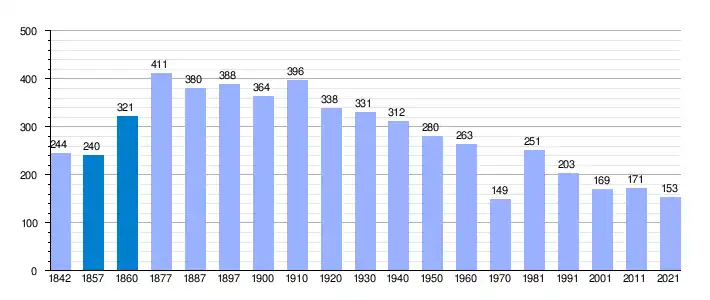 Población de derecho según los censos de población del INE. Población de hecho según los censos de población del INE.En 1971 crece el término del municipio porque incorpora a Bretún, La Cuesta, Diustes, Huérteles y Villar de Maya[11] |