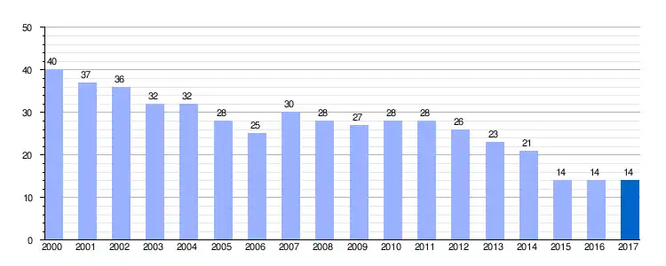 | Gráfica de evolución demográfica de Villar del Saz de Navalón entre 2000 y 2017 |
