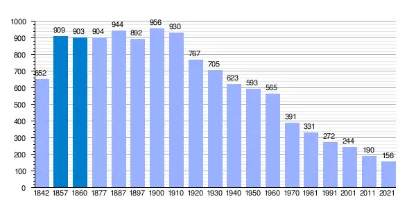 | Gráfica de evolución demográfica de Villardefrades[3] entre 1842 y 2021 |