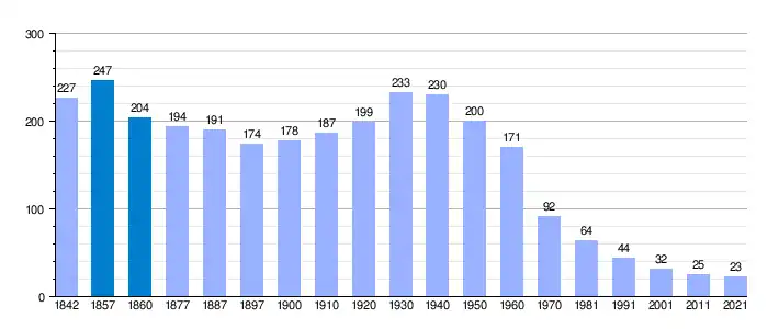 | Gráfica de evolución demográfica de Villarejo de la Peñuela[6] entre 1842 y 2021 |
