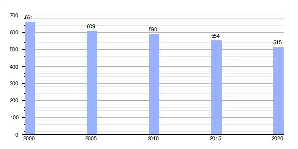 | Gráfica de evolución demográfica de Villares entre 2000 y 2020 |