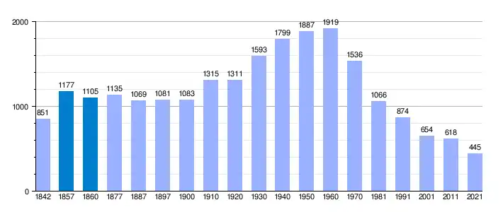 | Gráfica de evolución demográfica de Villares del Saz[8] entre 1842 y 2021 |