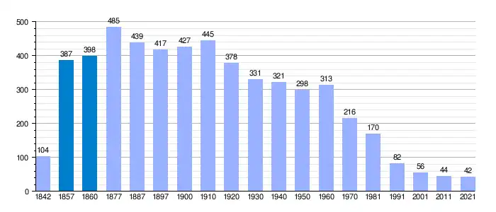 Población de derecho según los censos de población del INE Población de hecho según los censos de población del INEEntre el censo de 1857 y el anterior, crece el término del municipio porque incorpora a 375050 (Villargordo)[5] |