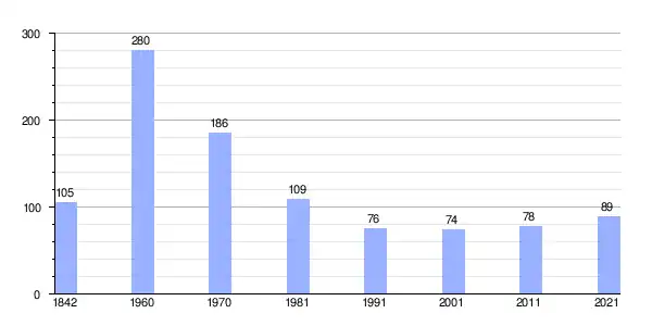 | Gráfica de evolución demográfica de Villarroya del Campo[4] entre 1842 y 2021 |