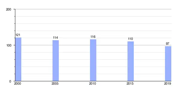 | Gráfica de evolución demográfica de Villartelín (parroquia) entre 2000 y 2019 |