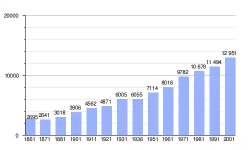 | Gráfica de evolución demográfica de Villasanta entre 1861 y 2001 |